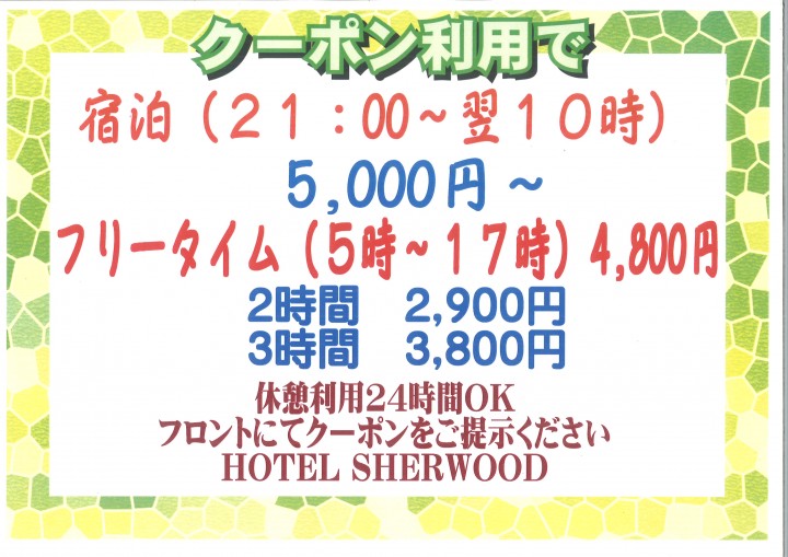 クーポン利用で宿泊5,000円~!!